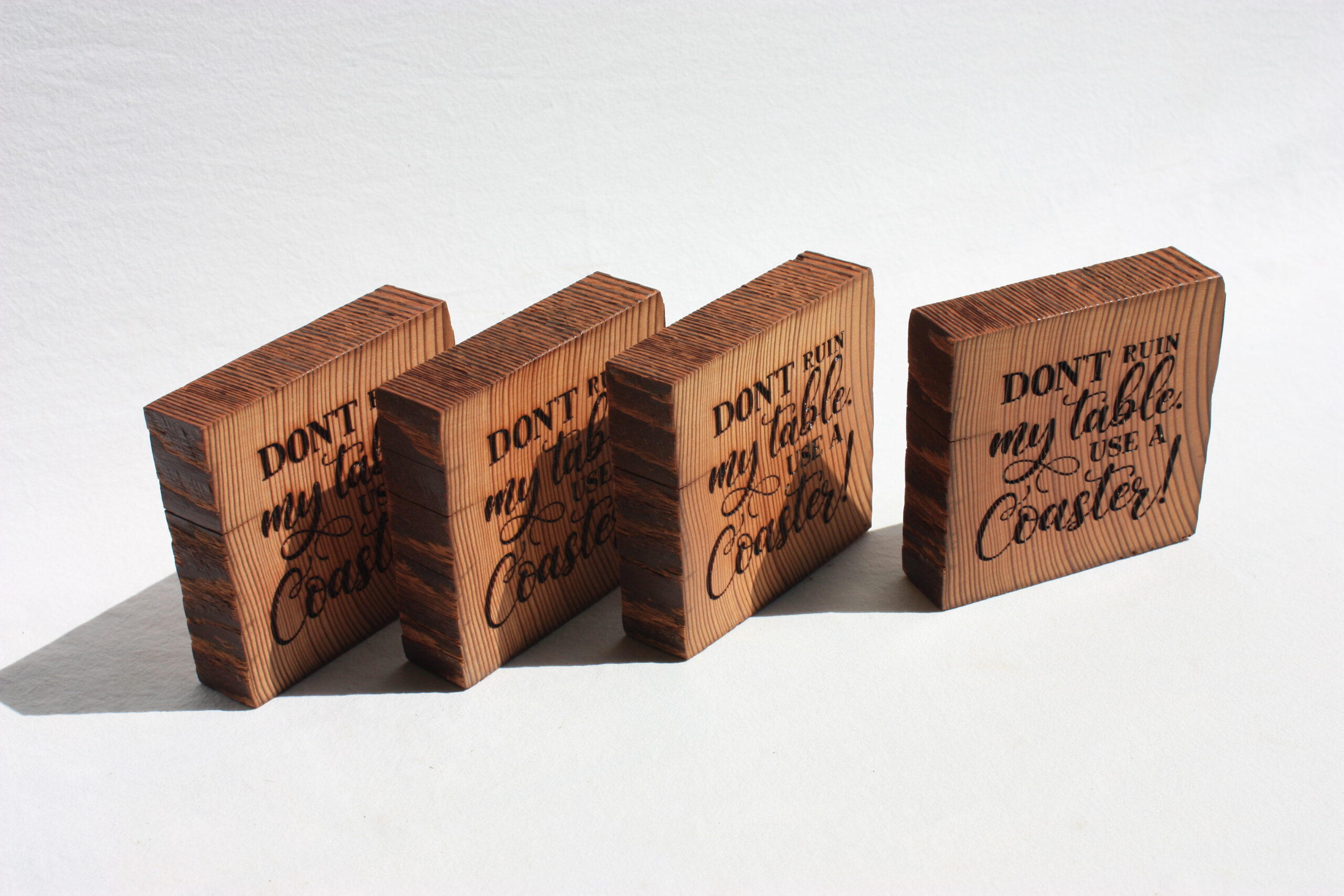 Don’t Ruin My Table Use a Coaster! Coasters are sold individually. These were made from wood salvaged from an 1889 barn in Beavercreek, OR.